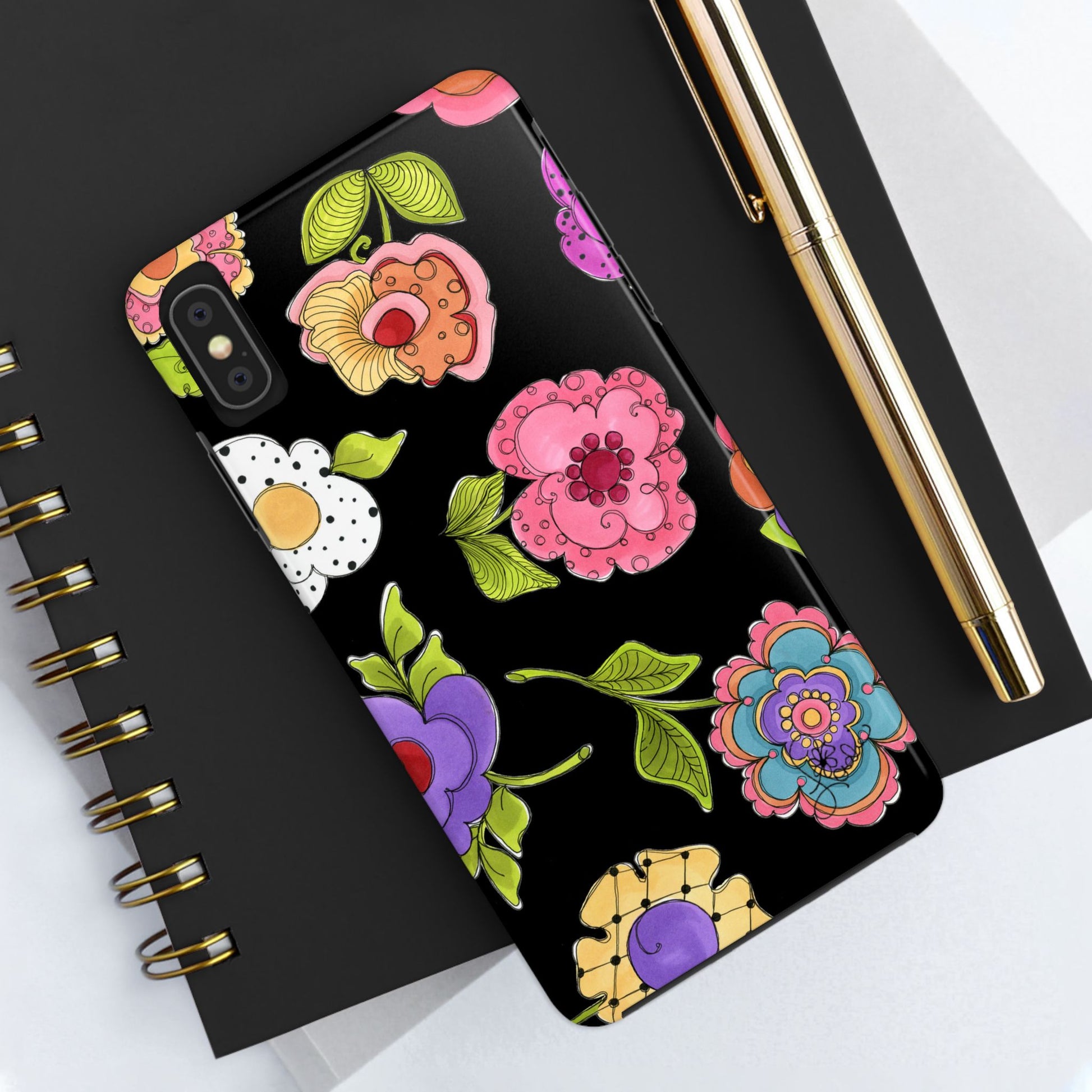 Love the cover and the flower print. One thing could be improved—my phone has a harder time charging on the disc charger. It sometimes doesn’t sit properly and then doesn’t charge.