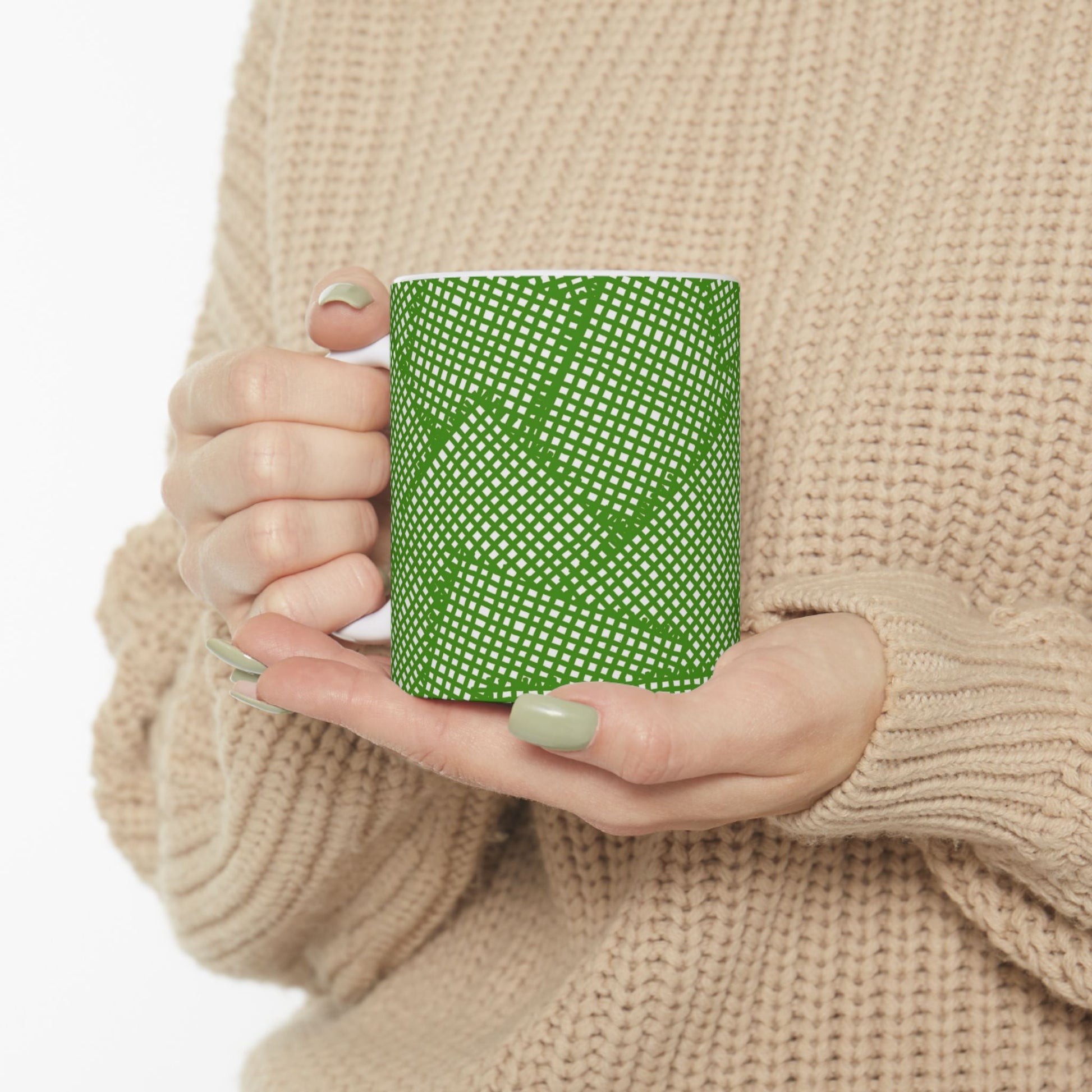 White ceramic 11oz mug with fun, colorful, Loralie sewing ladies enjoying each other's quirky company. Every project is more fun with the perfect Sewing Sisters mug! Makes a great gift!