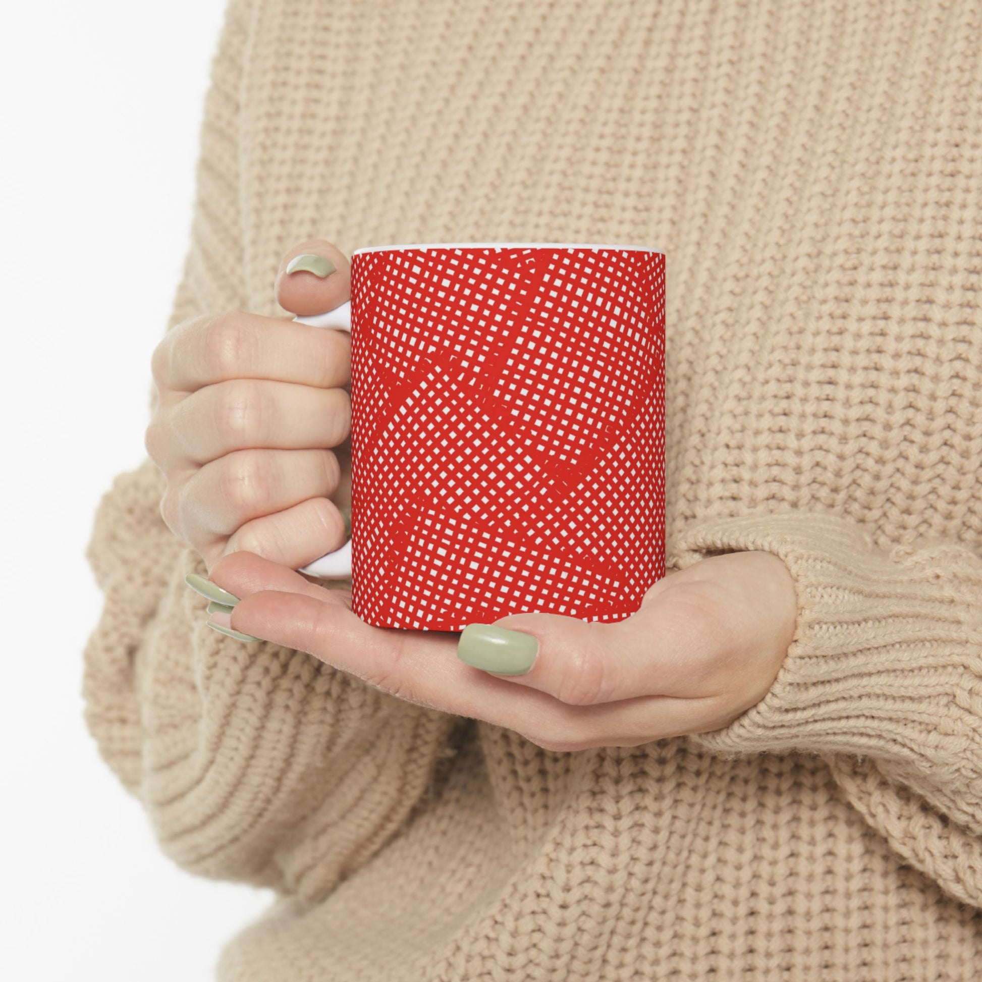 White ceramic 11oz mug with fun, colorful, Loralie sewing ladies enjoying each other's quirky company. Every project is more fun with the perfect Sewing Sisters mug! Makes a great gift!