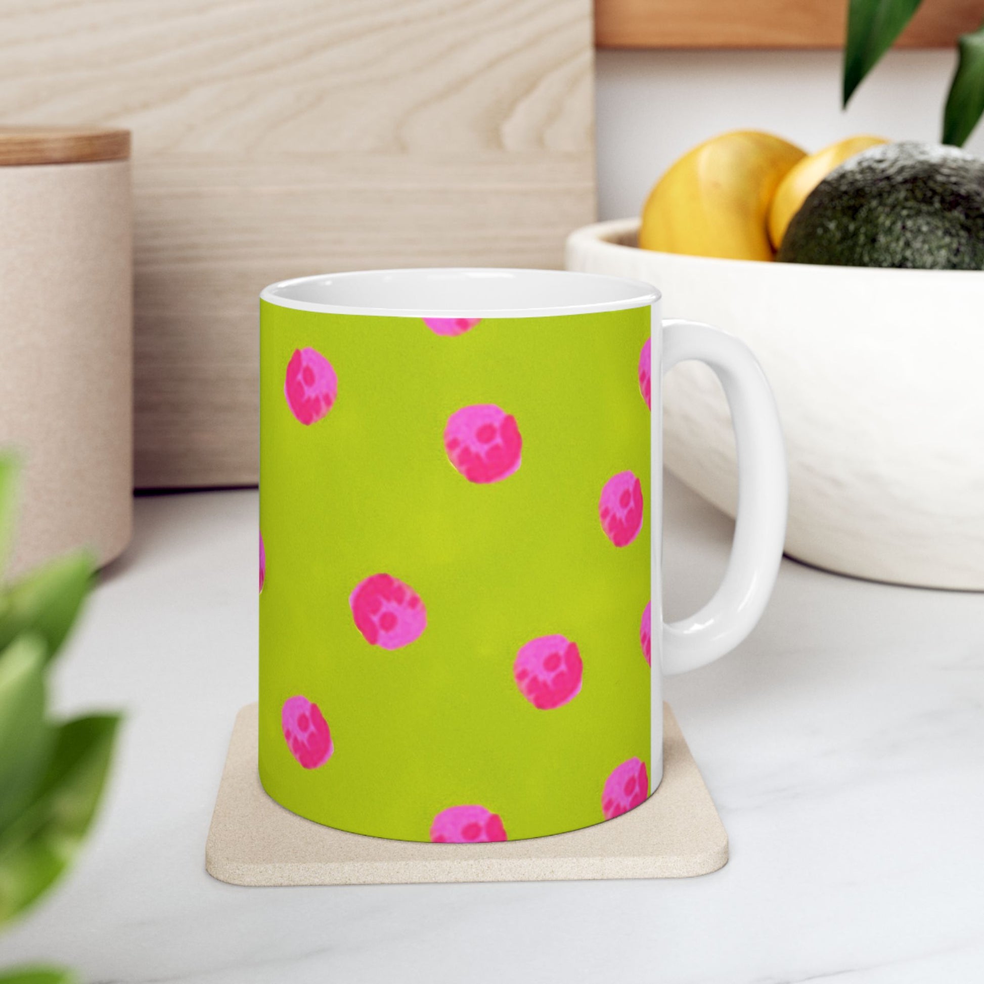 White ceramic 11oz mug with fun, colorful, Loralie sewing ladies enjoying each other's quirky company. Every project is more fun with the perfect Sewing Sisters mug! Makes a great gift!
