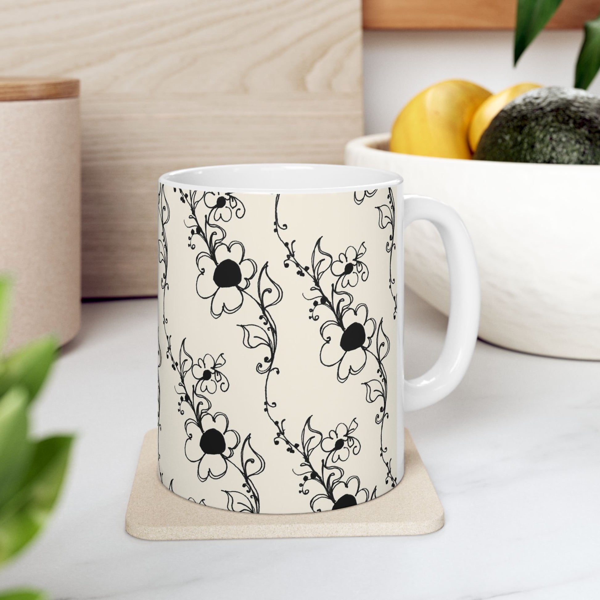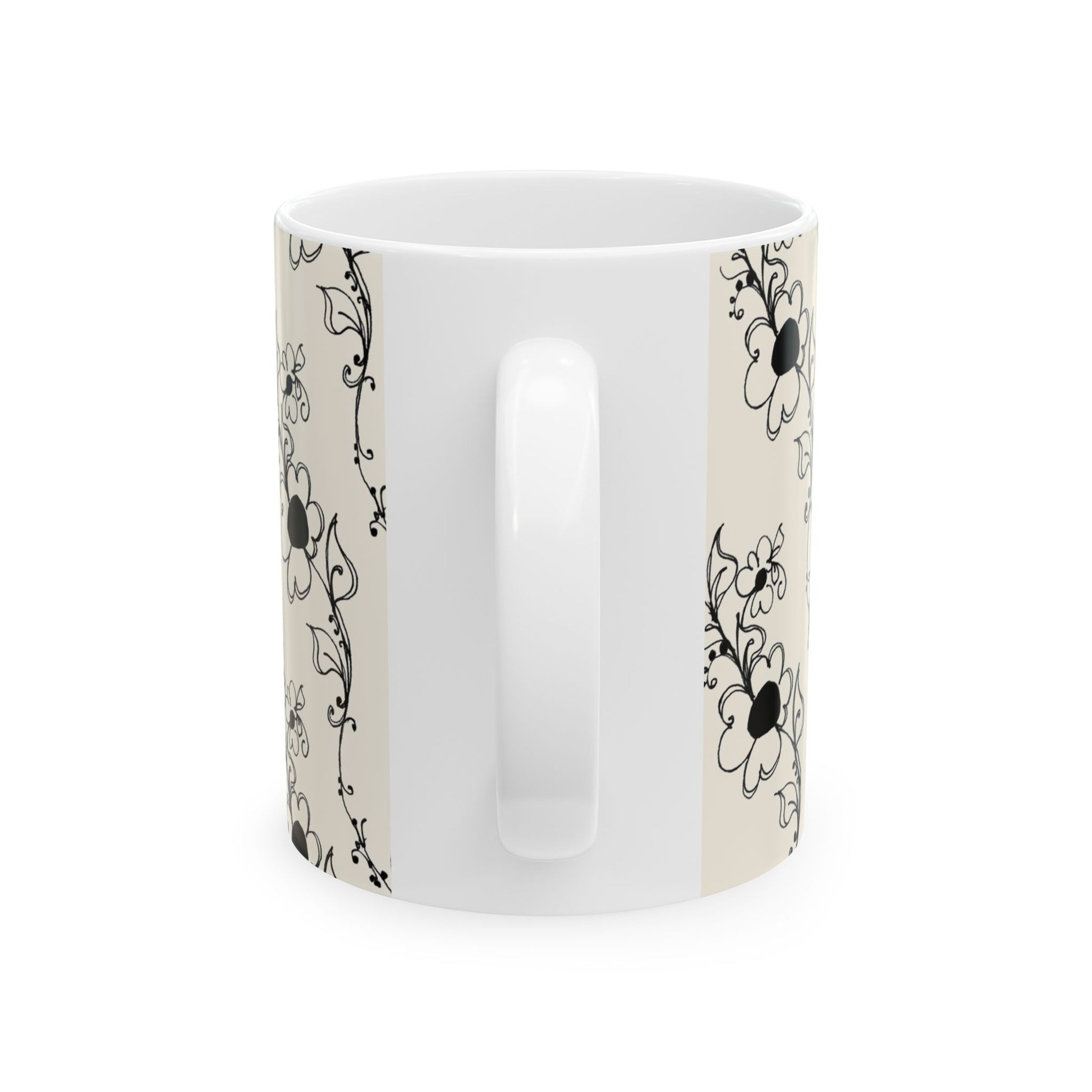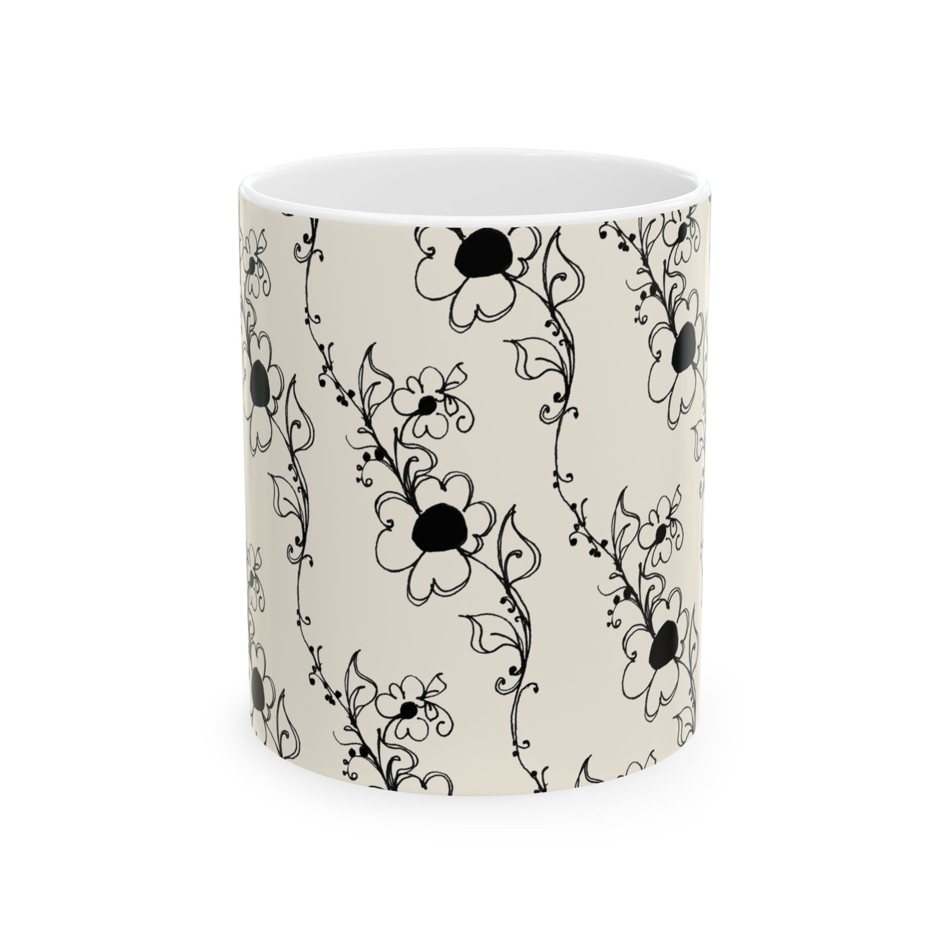 Diagonal Daisies Ivory / Black Cup