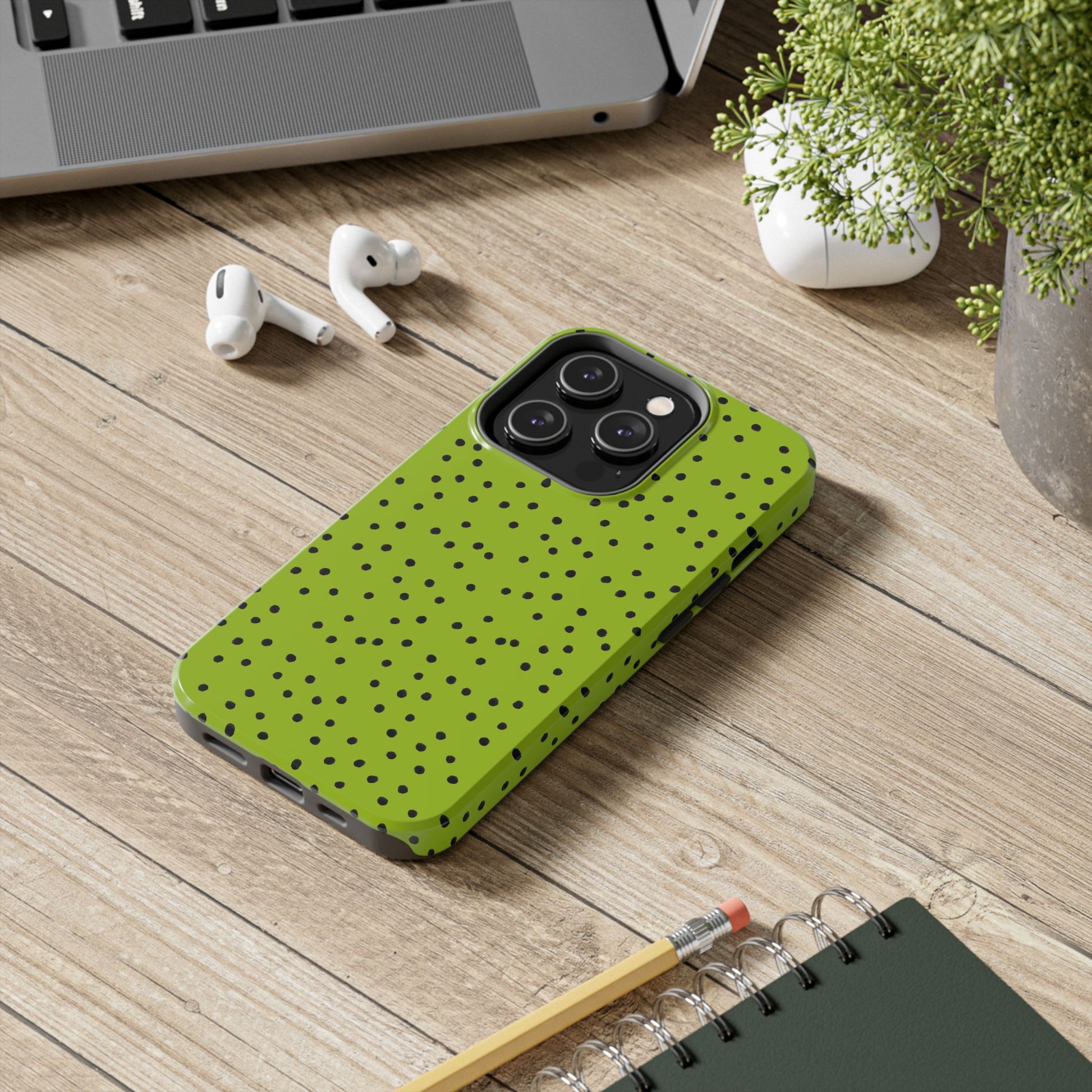 Dinky Dots Chartreuse / Black Phone Case