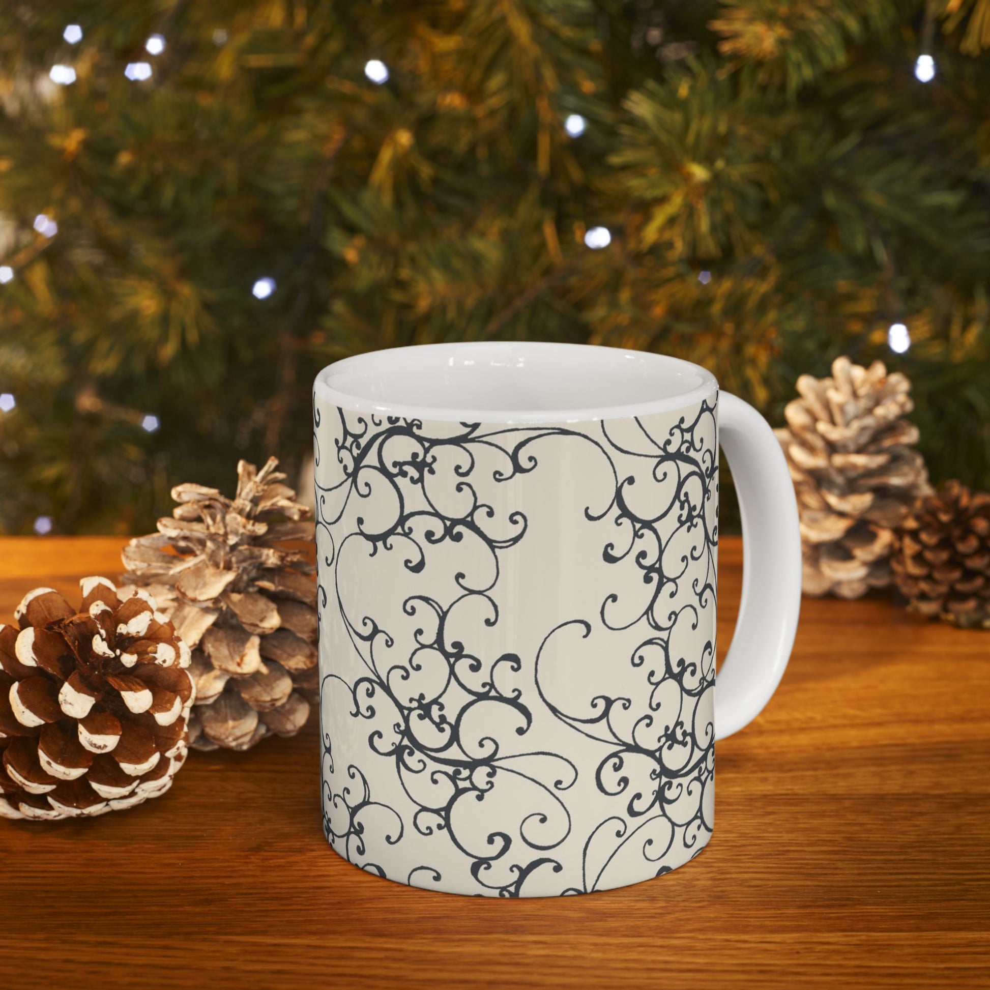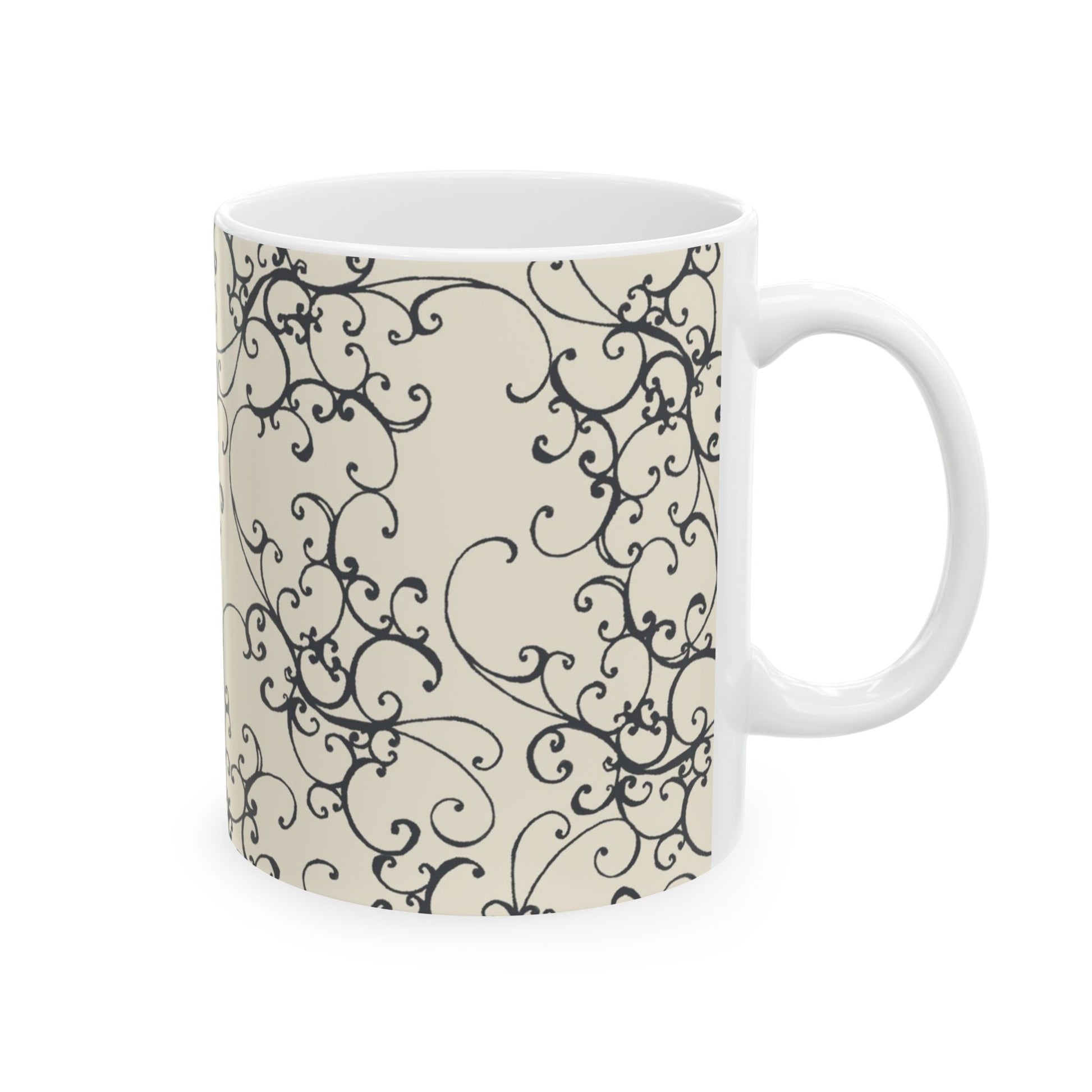 Elegant Scroll Ivory / Black Cup