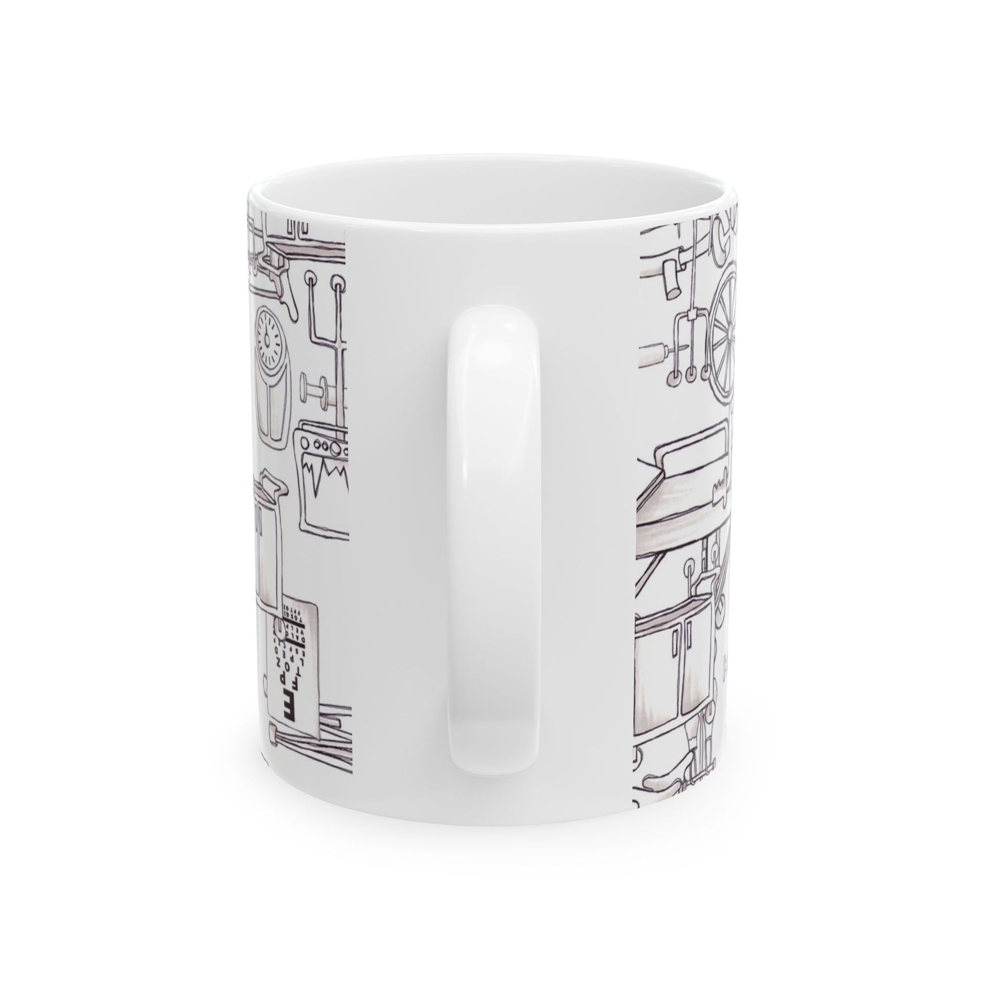 White ceramic 11oz mug with fun, colorful, Loralie sewing ladies enjoying each other's quirky company. Every project is more fun with the perfect Sewing Sisters mug! Makes a great gift!