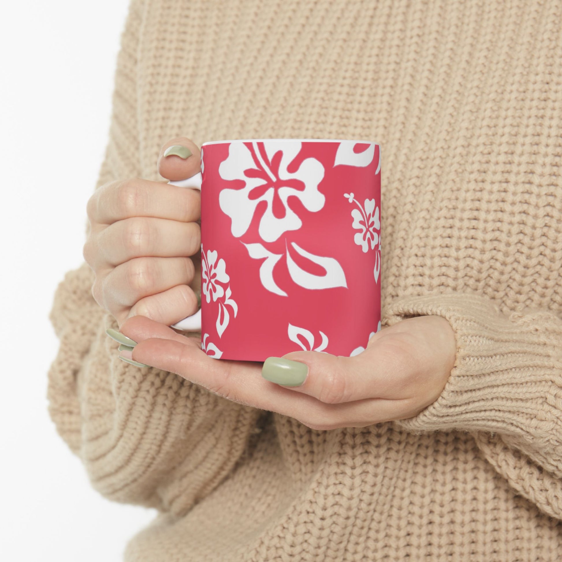 White ceramic 11oz mug with fun, colorful, Loralie sewing ladies enjoying each other's quirky company. Every project is more fun with the perfect Sewing Sisters mug! Makes a great gift!
