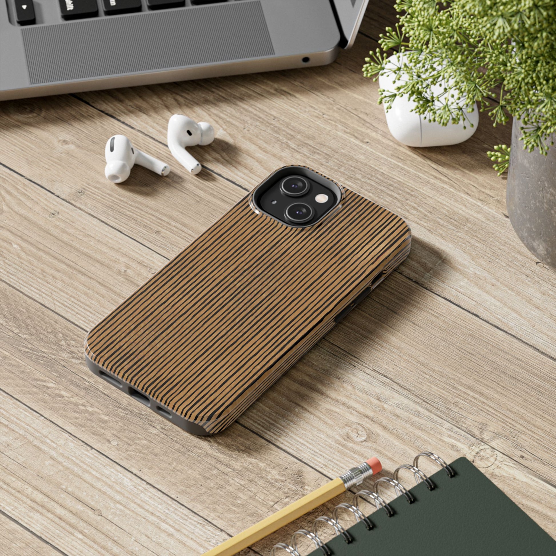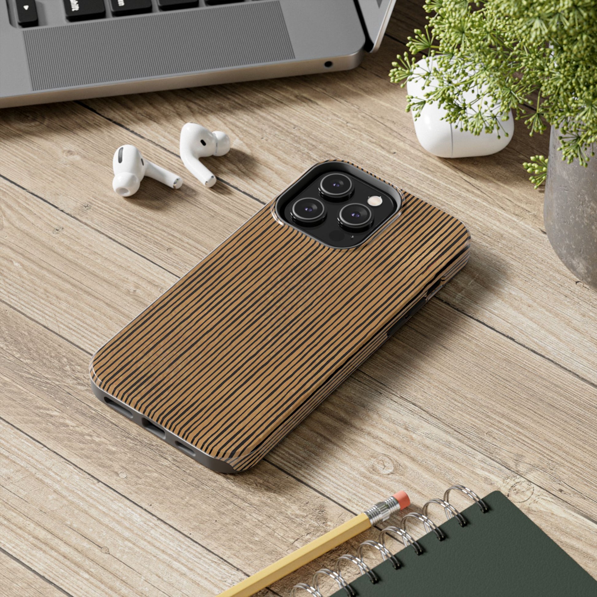 Quirky Pin Stripe Tan / Black Phone Case