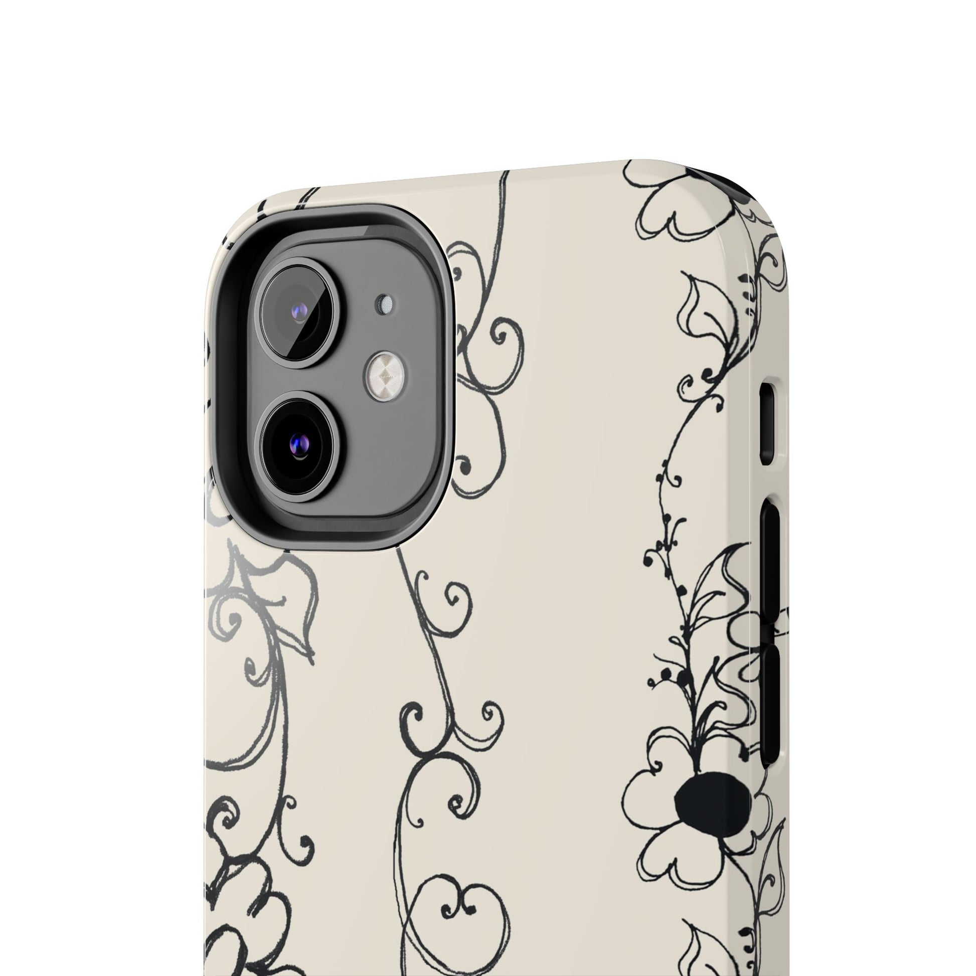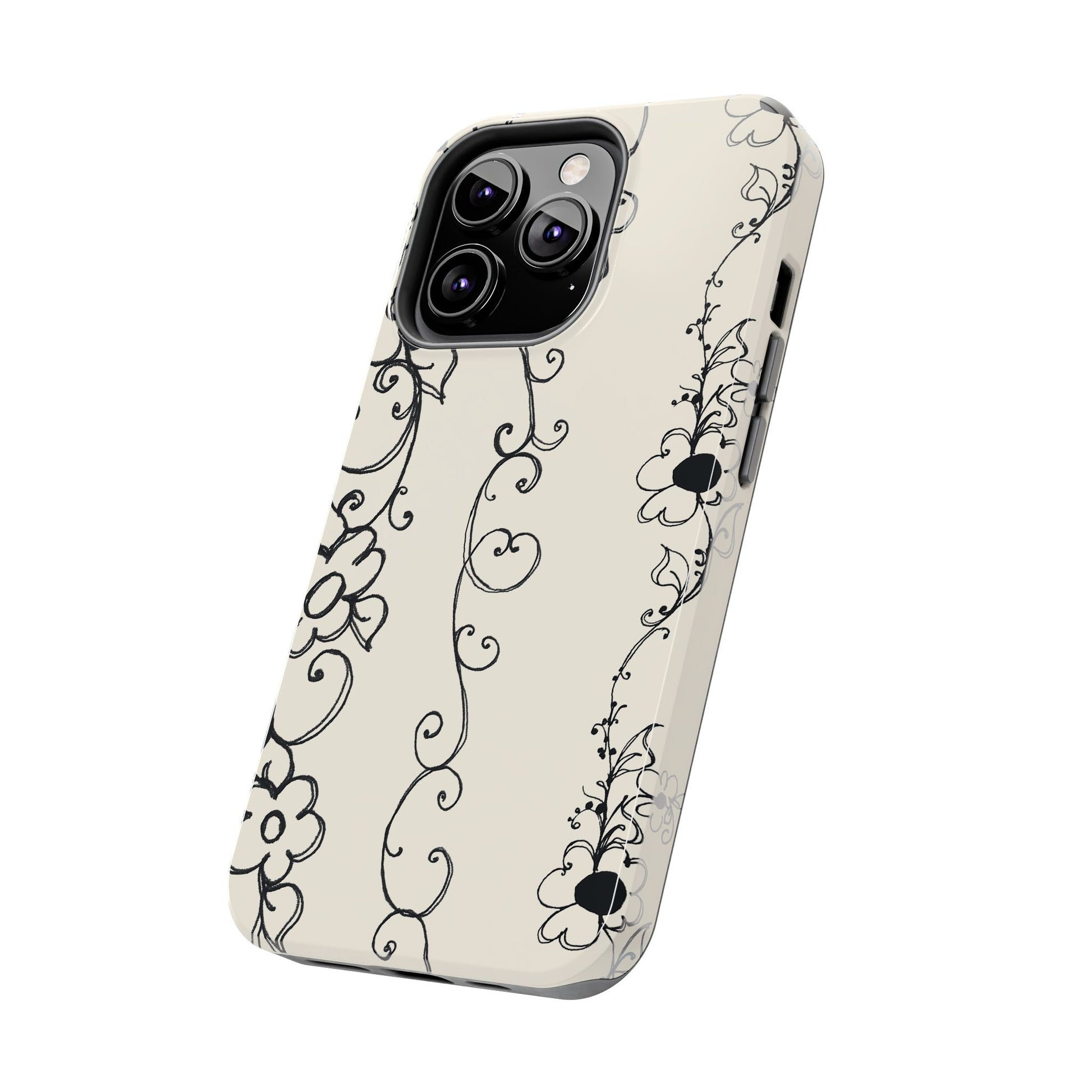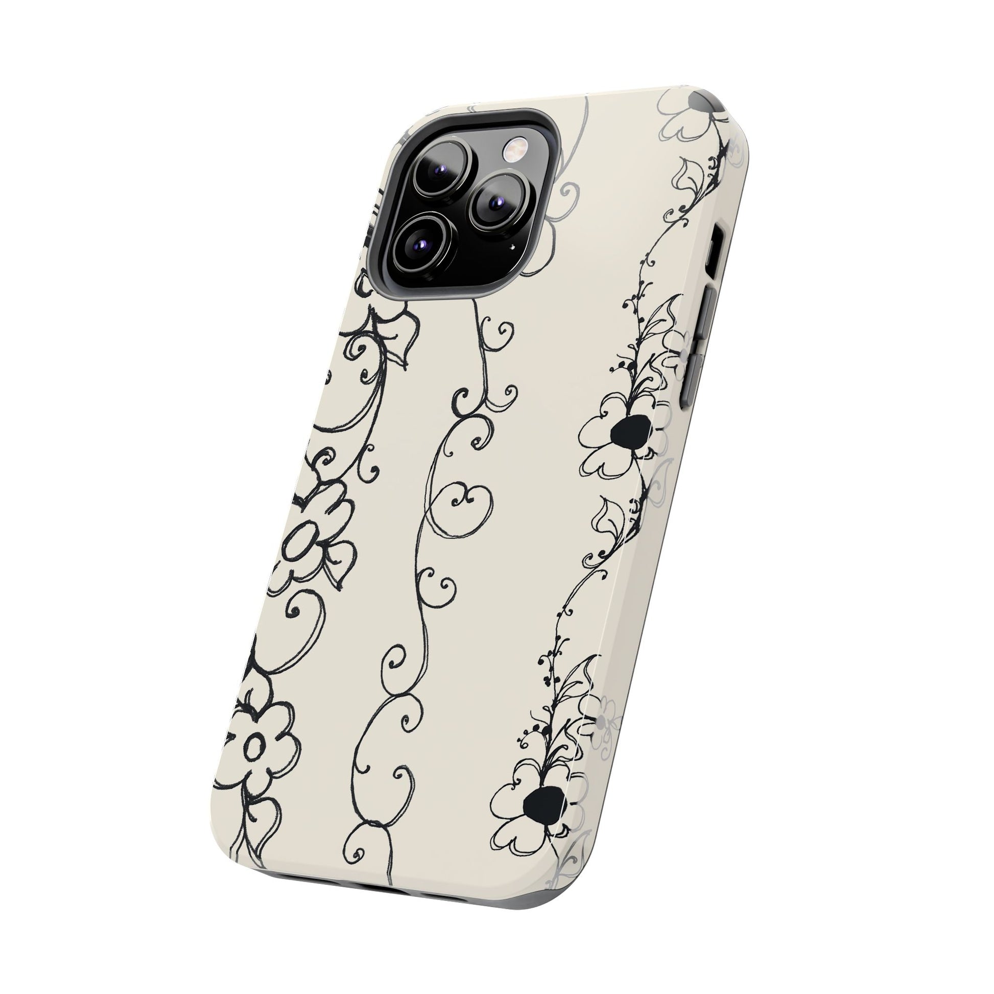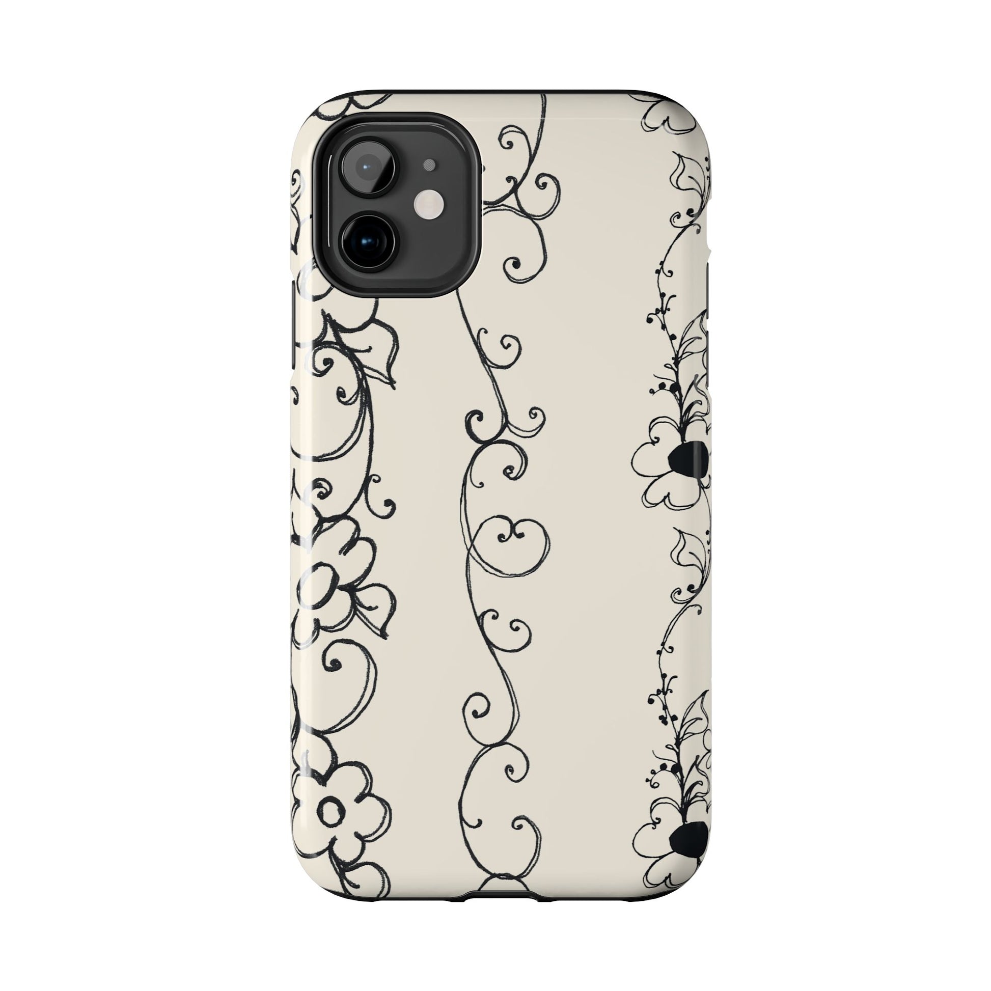 Scroll Flower Stripe Muslin / Black Phone Case