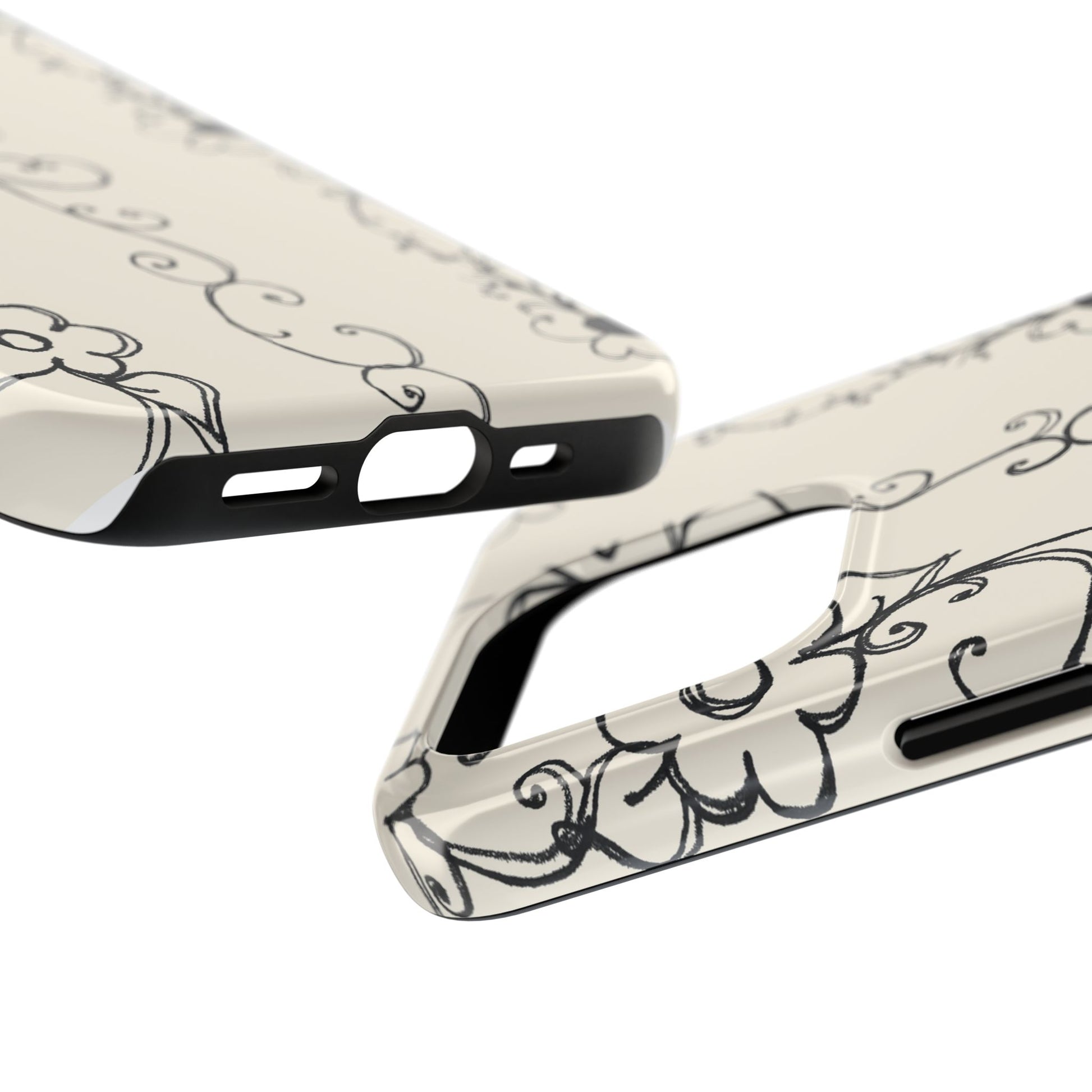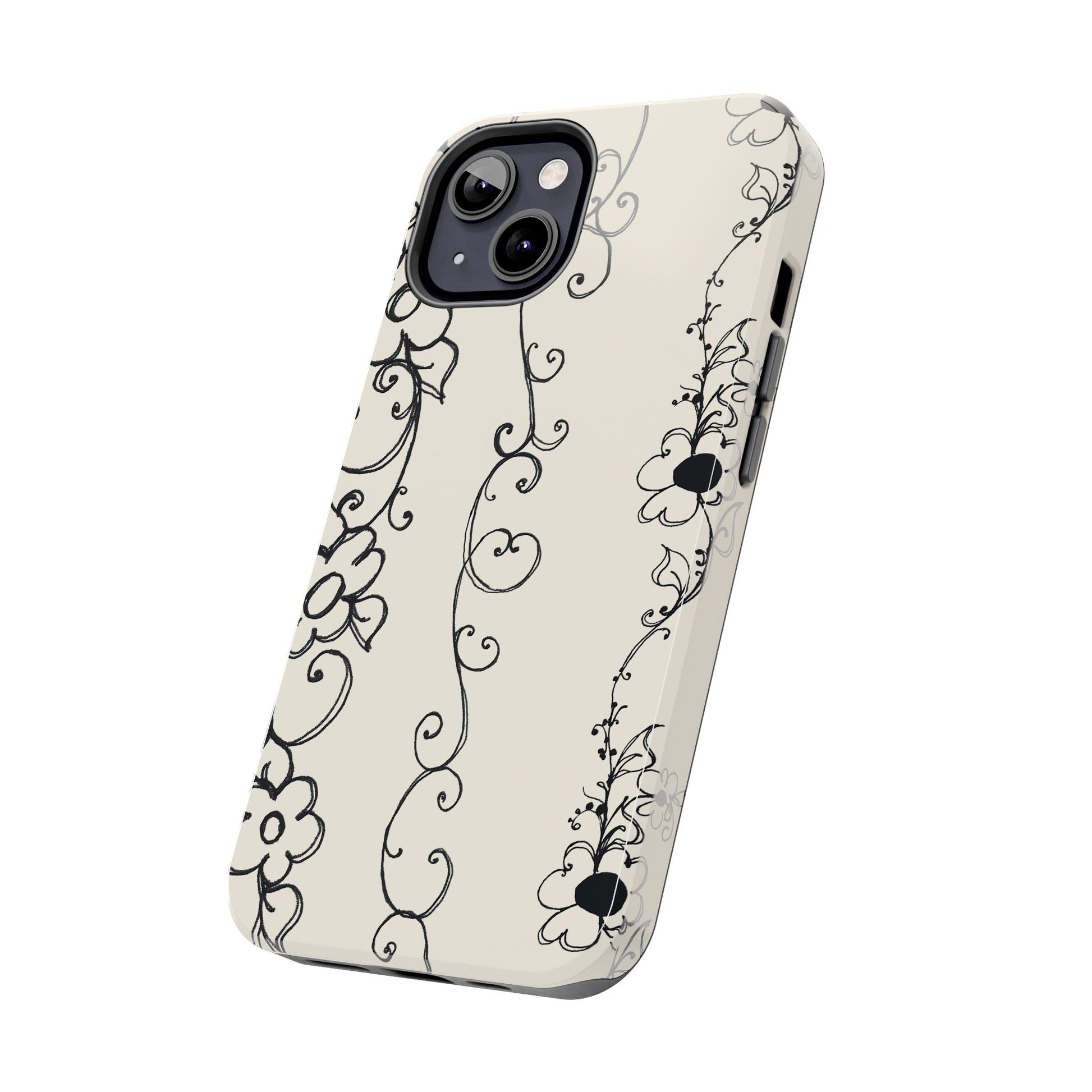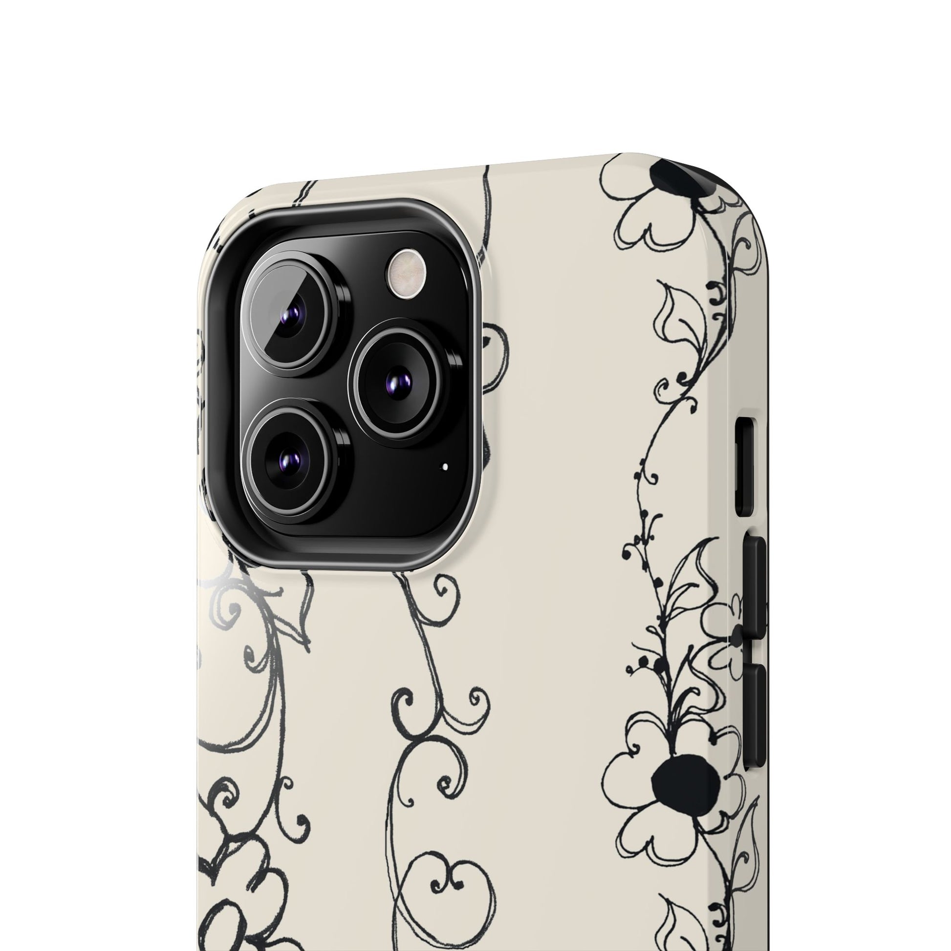 Scroll Flower Stripe Muslin / Black Phone Case