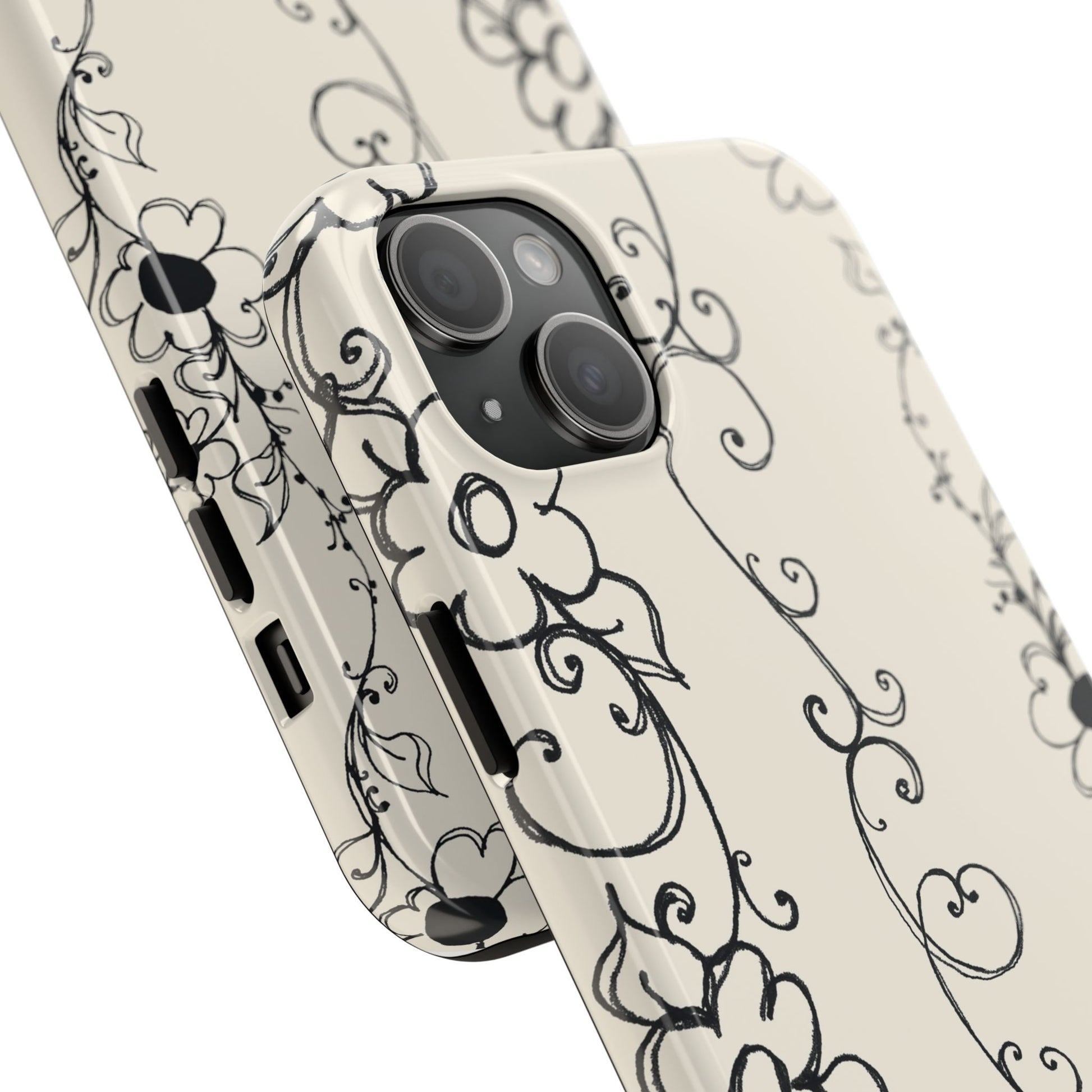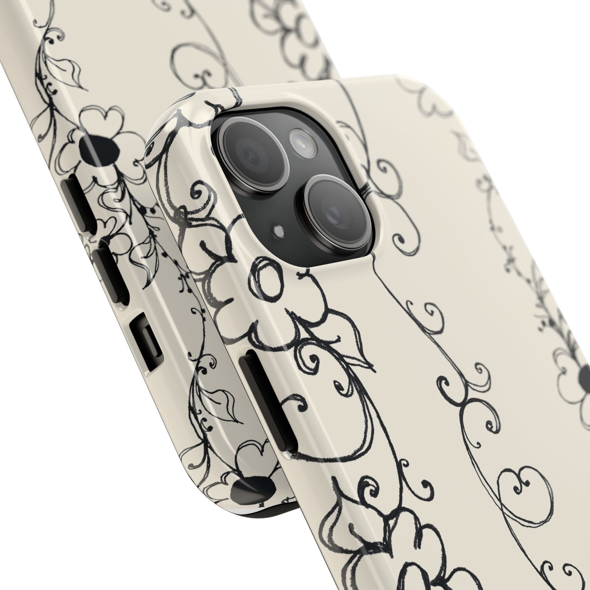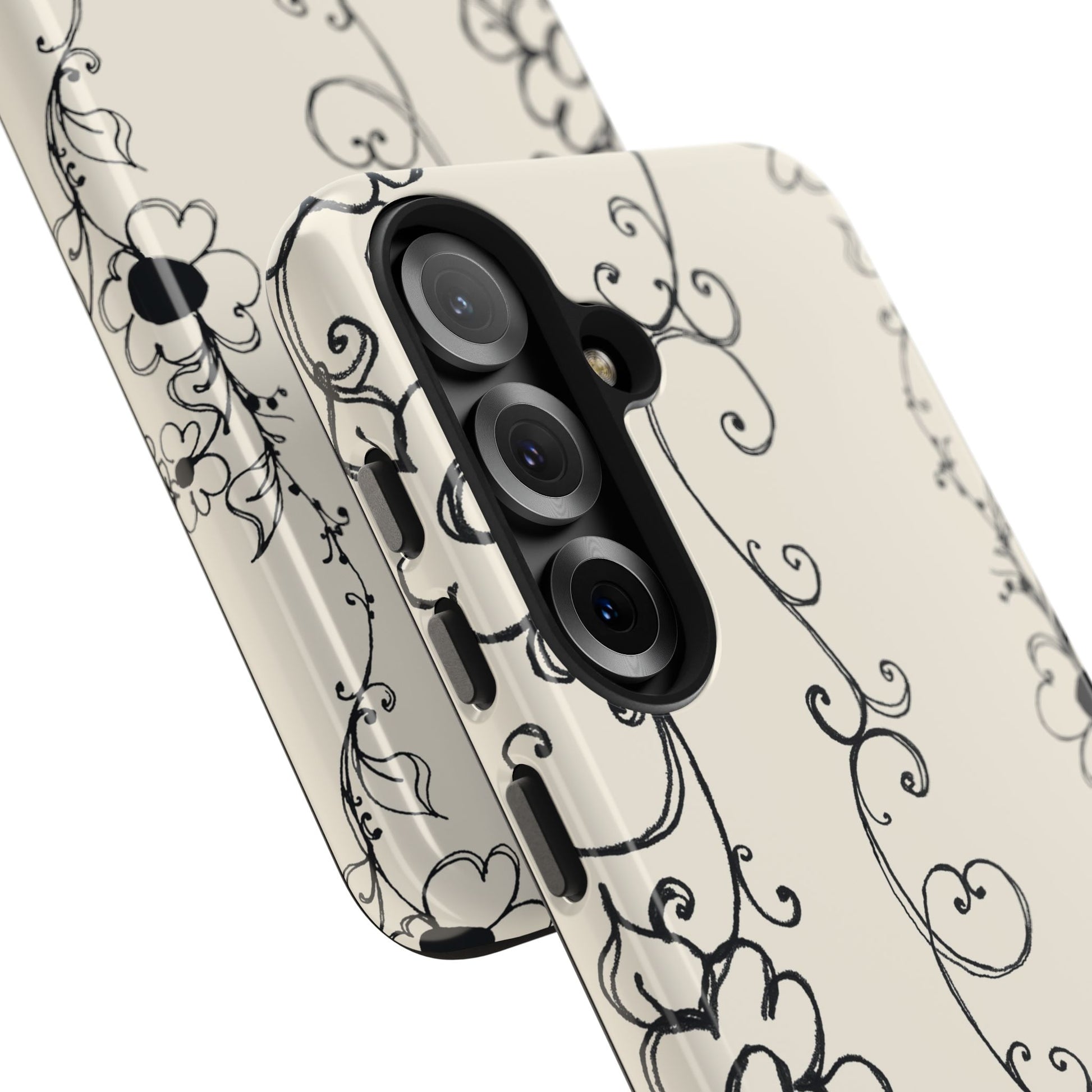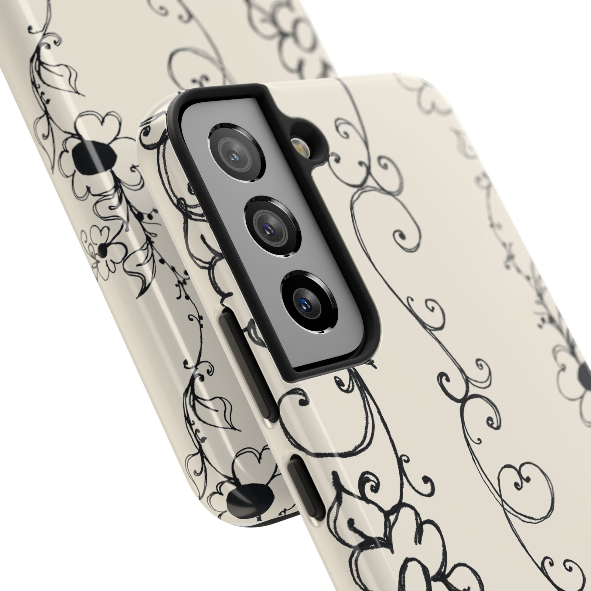 Scroll Flower Stripe Muslin / Black Phone Case