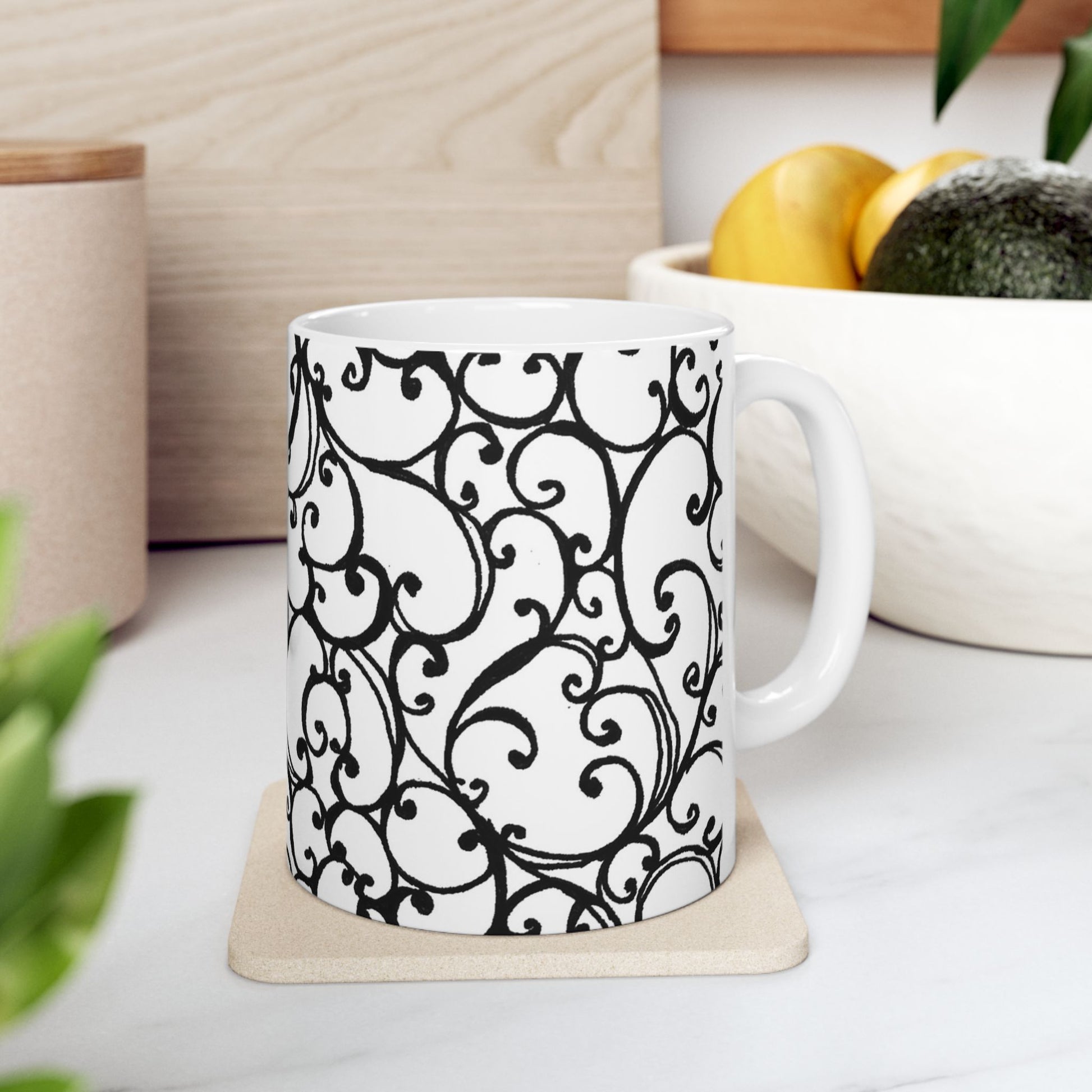Scrollie White / Black Cup