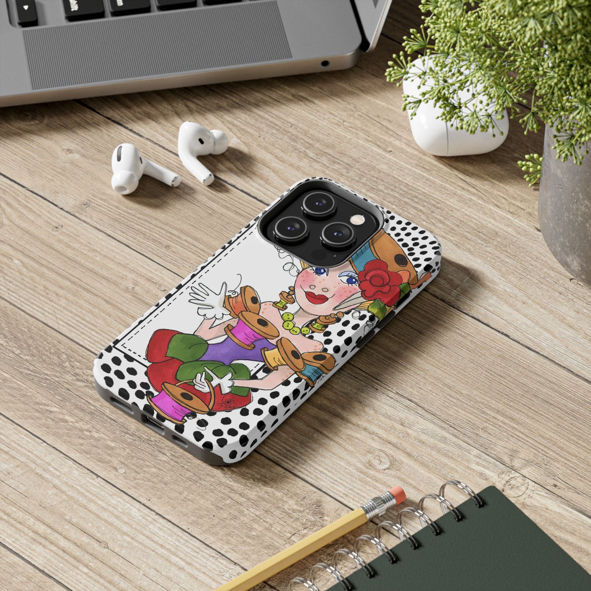 I absolutely love the iPhone case I purchased from Loralie Designs. Unfortunately, with her plans of closing her online website, there are no iPhone 15 or later options available. But if you have anything a bit older, this is for you. The price is amazing, the design of the sewer w/thread spools (the one I chose) is super cute, and it protects the phone from drops (ask me how I know ;-)