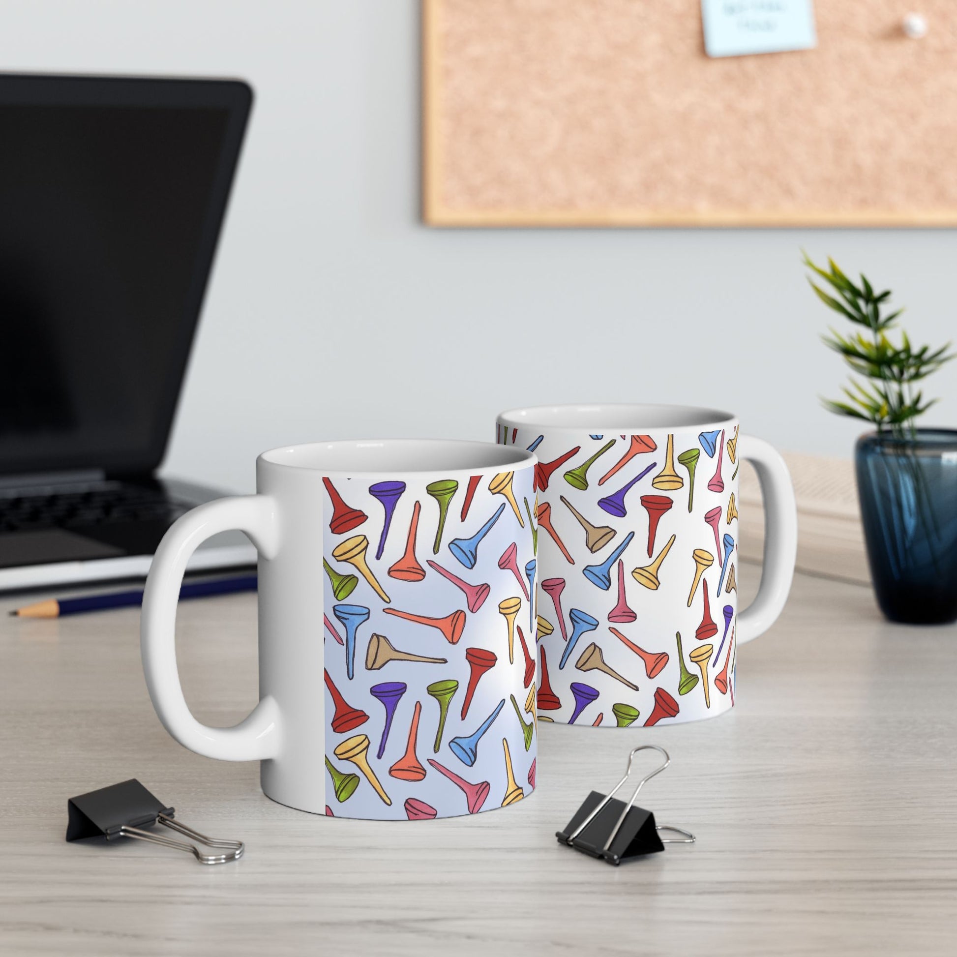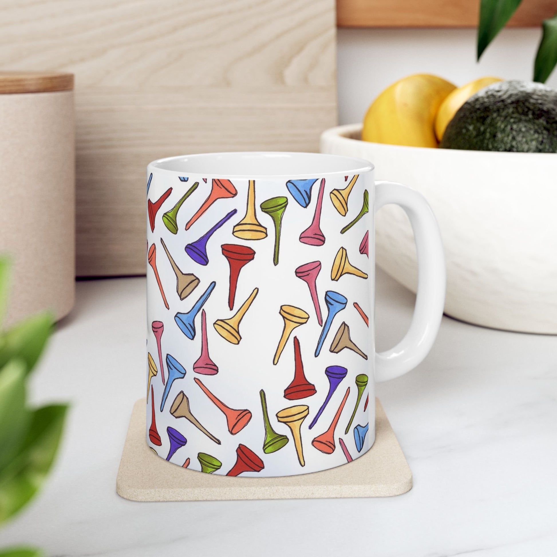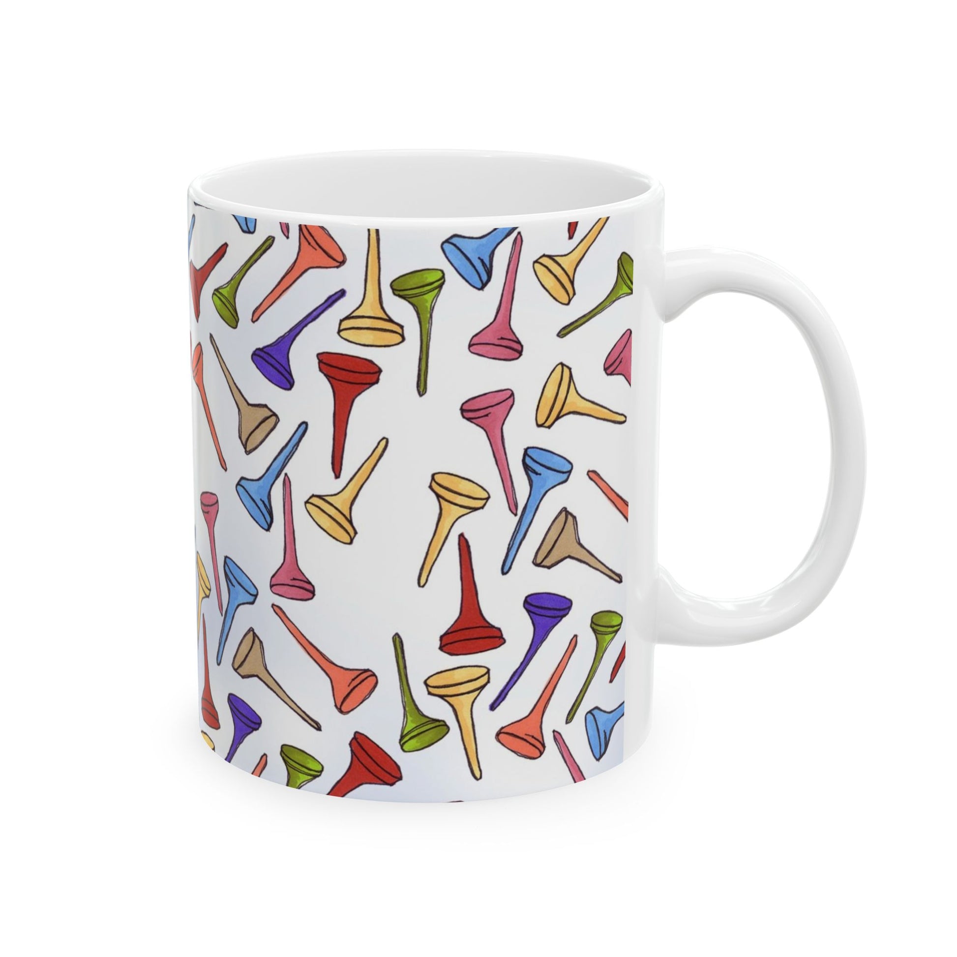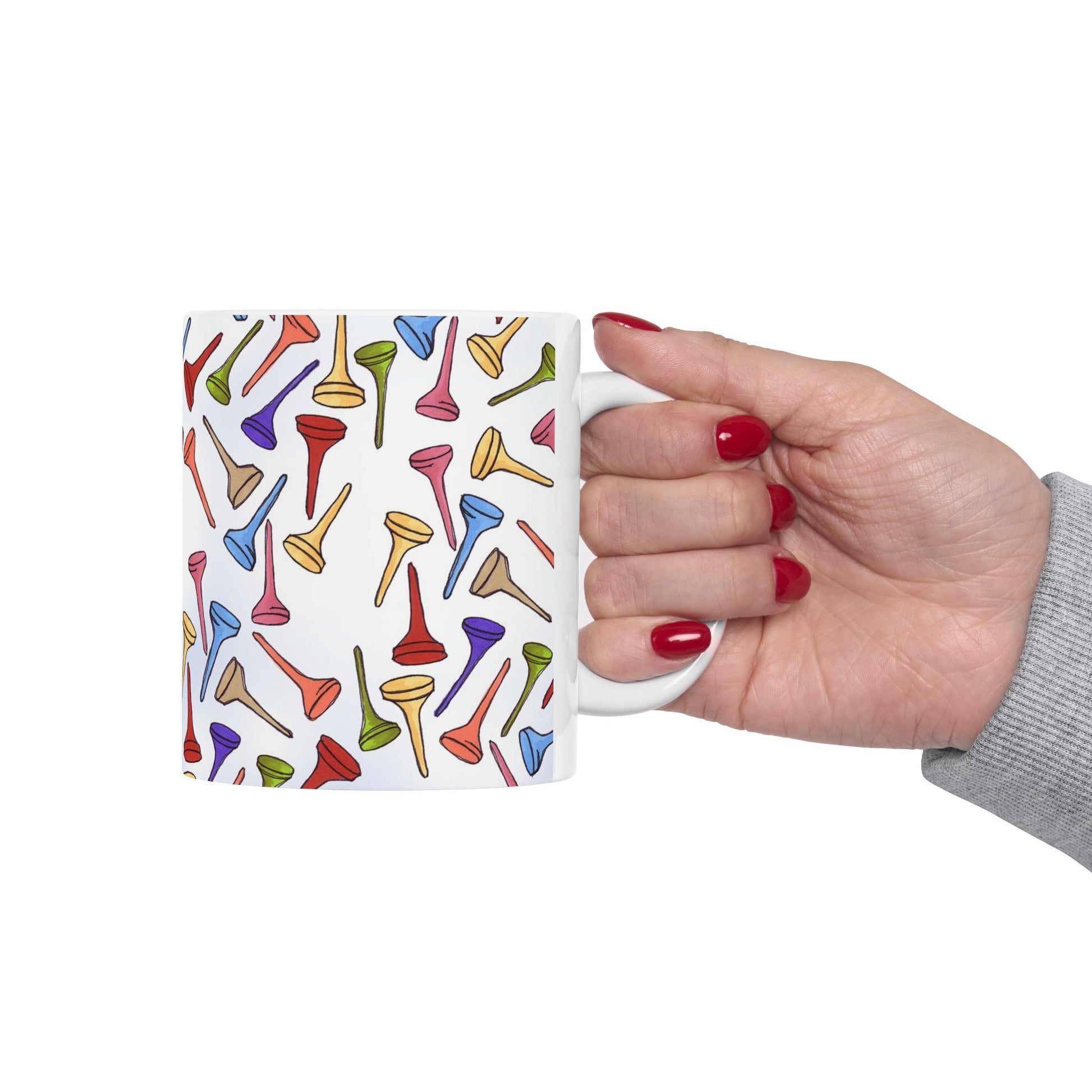 White ceramic 11oz mug with fun, colorful, Loralie sewing ladies enjoying each other's quirky company. Every project is more fun with the perfect Sewing Sisters mug! Makes a great gift!