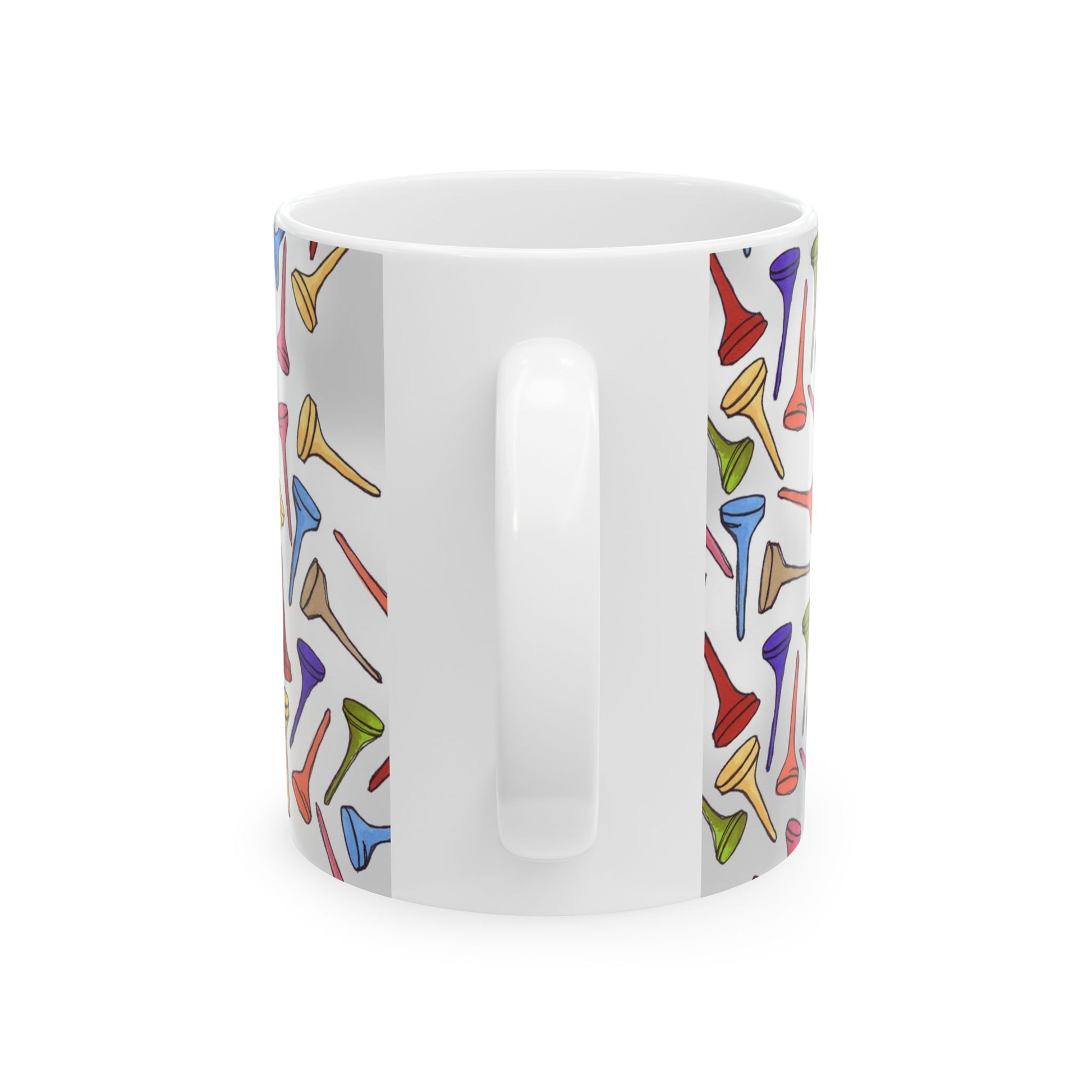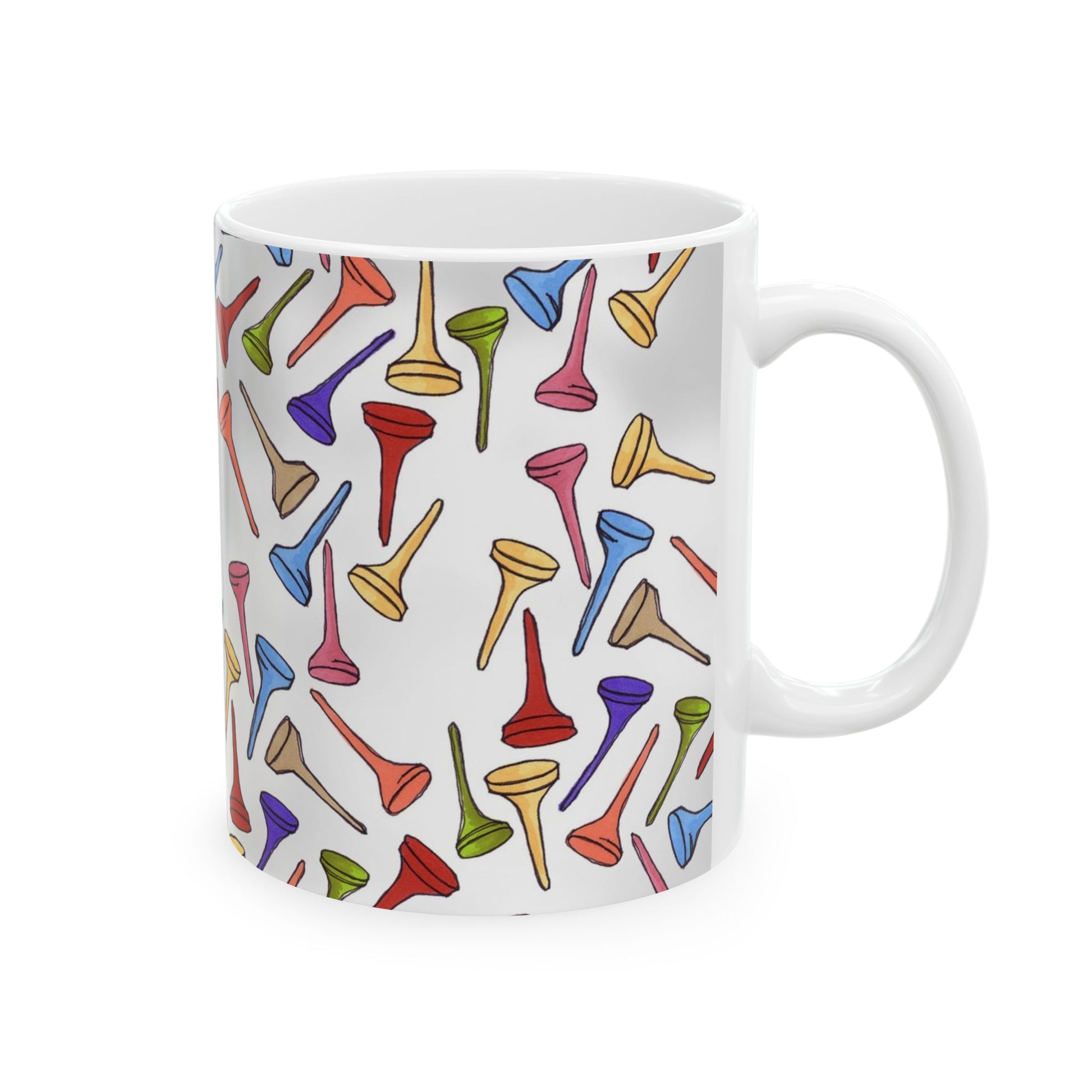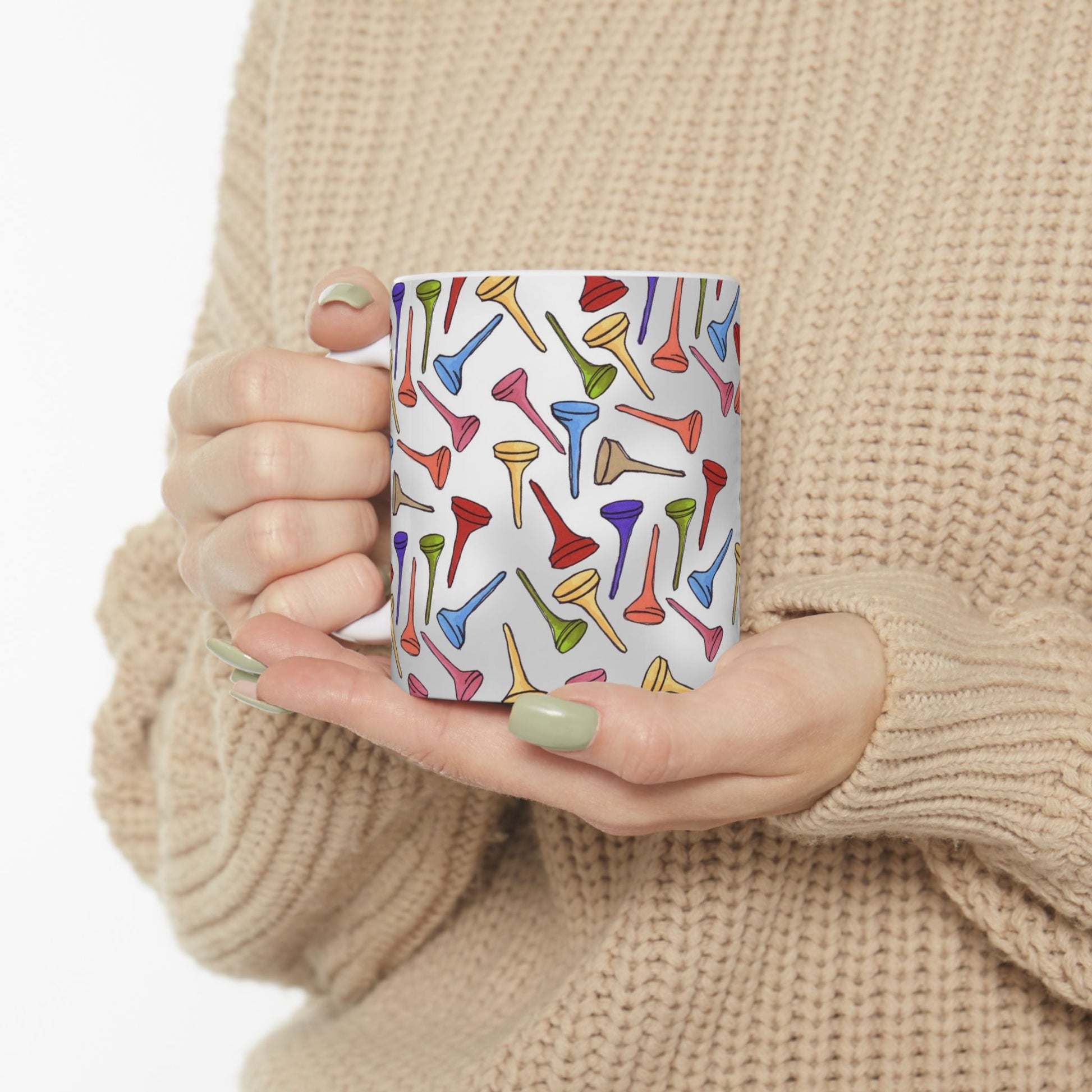 White ceramic 11oz mug with fun, colorful, Loralie sewing ladies enjoying each other's quirky company. Every project is more fun with the perfect Sewing Sisters mug! Makes a great gift!